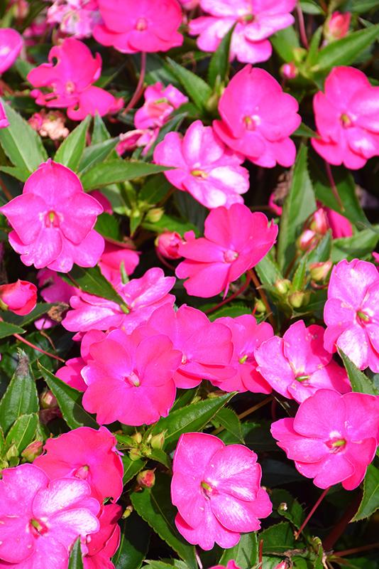 SunPatiens® Vigorous Rose Pink New Guinea Impatiens features bold rose round flowers at the ends of the stems from mid spring to early fall. Its pointy leaves remain dark green in colour throughout the season.
