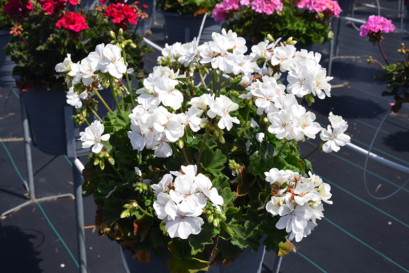 Moxie!™ White Geranium is a fine choice for the garden, but it is also a good selection for planting in outdoor containers and hanging baskets. It is often used as a 'filler' in the 'spiller-thriller-filler' container combination, providing a mass of flowers against which the thriller plants stand out. Note that when growing plants in outdoor containers and baskets, they may require more frequent waterings than they would in the yard or garden.