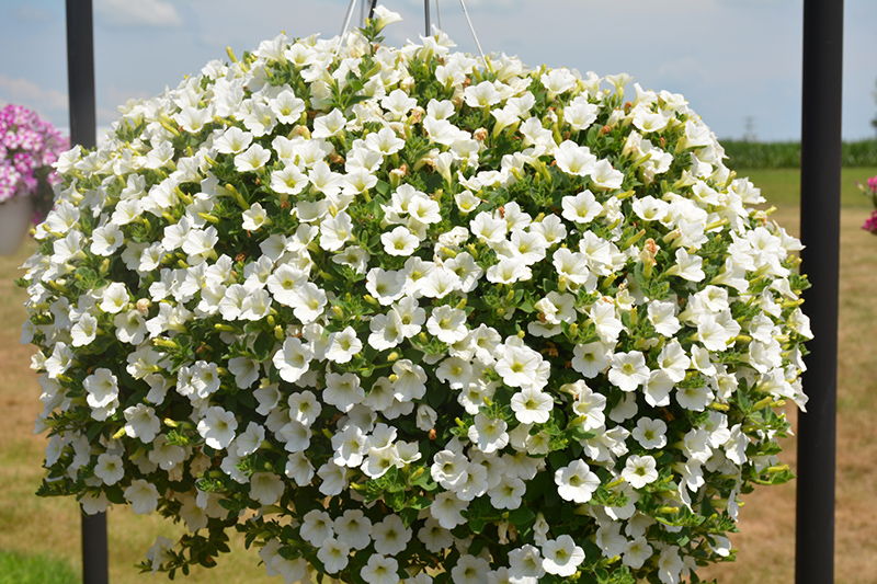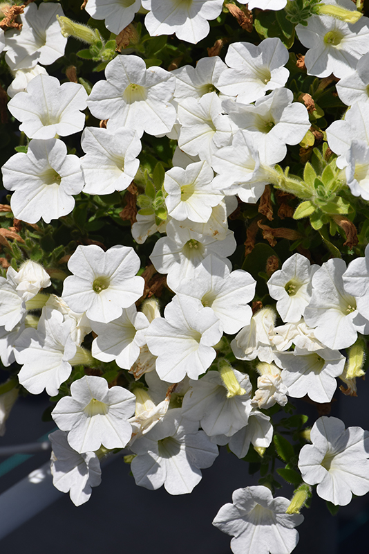Dekko™ White Petunia is a fine choice for the garden, but it is also a good selection for planting in outdoor containers and hanging baskets. Because of its spreading habit of growth, it is ideally suited for use as a 'spiller' in the 'spiller-thriller-filler' container combination; plant it near the edges where it can spill gracefully over the pot. Note that when growing plants in outdoor containers and baskets, they may require more frequent waterings than they would in the yard or garden.