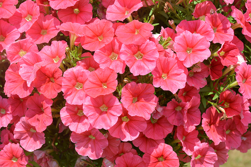 Sanguna® Patio Salmon Petunia is a fine choice for the garden, but it is also a good selection for planting in outdoor containers and hanging baskets. It is often used as a 'filler' in the 'spiller-thriller-filler' container combination, providing a mass of flowers against which the larger thriller plants stand out. Note that when growing plants in outdoor containers and baskets, they may require more frequent waterings than they would in the yard or garden.