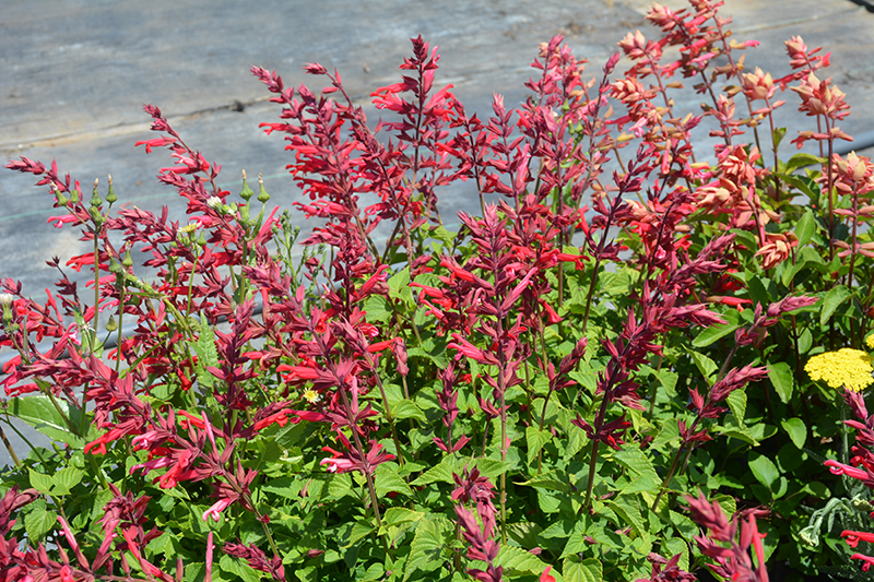 Roman Red Salvia has masses of beautiful spikes of red flowers rising above the foliage from late spring to mid fall, which emerge from distinctive dark red flower buds, and which are most effective when planted in groupings. The flowers are excellent for cutting. Its fragrant narrow leaves remain green in colour throughout the season.