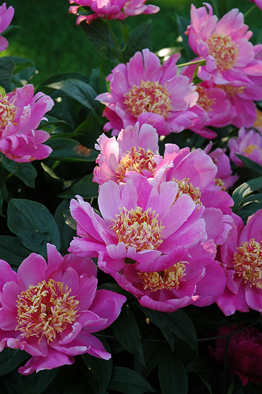 Dignity Peony features bold lightly-scented semi-double fuchsia flowers with yellow eyes and red centers at the ends of the stems from late spring to early summer. The flowers are excellent for cutting. Its compound leaves remain green in colour throughout the season.