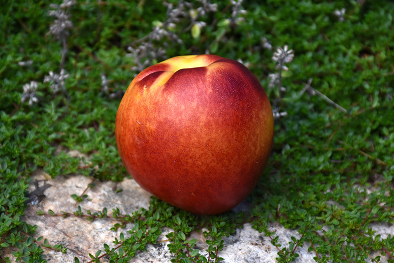 Royal Giant Nectarine is a small tree that is typically grown for its edible qualities. It produces large yellow round fruit (technically 'drupes') with a crimson blush and yellow flesh which are usually ready for picking from mid to late summer. Note that the fruits have hard inedible pits inside which must be removed before eating or processing. The fruits have a sweet taste with a juicy texture and a pleasant fragrance.