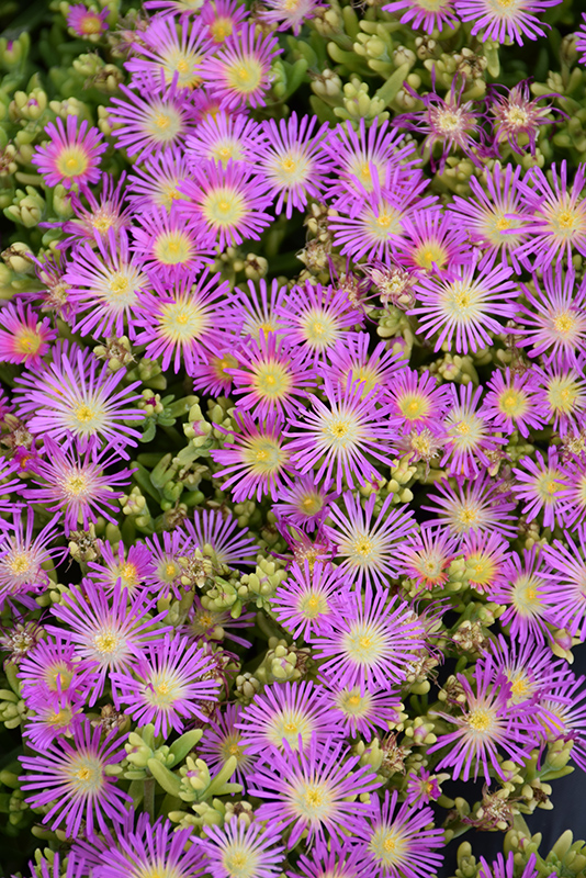 Suntropics® Purple Ice Plant features showy purple daisy flowers with hot pink overtones and yellow centers rising above the foliage from early summer to mid fall. Its attractive small succulent narrow leaves are grayish green in colour. As an added bonus, the foliage turns a gorgeous burgundy in the fall.