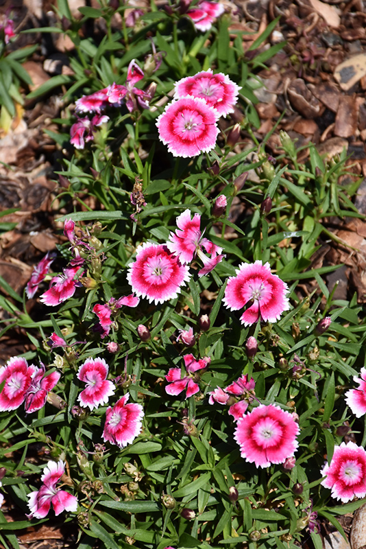 Beauties® Olivia Bella Pinks will grow to be only 6 inches tall at maturity extending to 8 inches tall with the flowers, with a spread of 10 inches. When grown in masses or used as a bedding plant, individual plants should be spaced approximately 8 inches apart. Its foliage tends to remain low and dense right to the ground. It grows at a medium rate, and under ideal conditions can be expected to live for approximately 10 years. As an evegreen perennial, this plant will typically keep its form and foliage year-round.