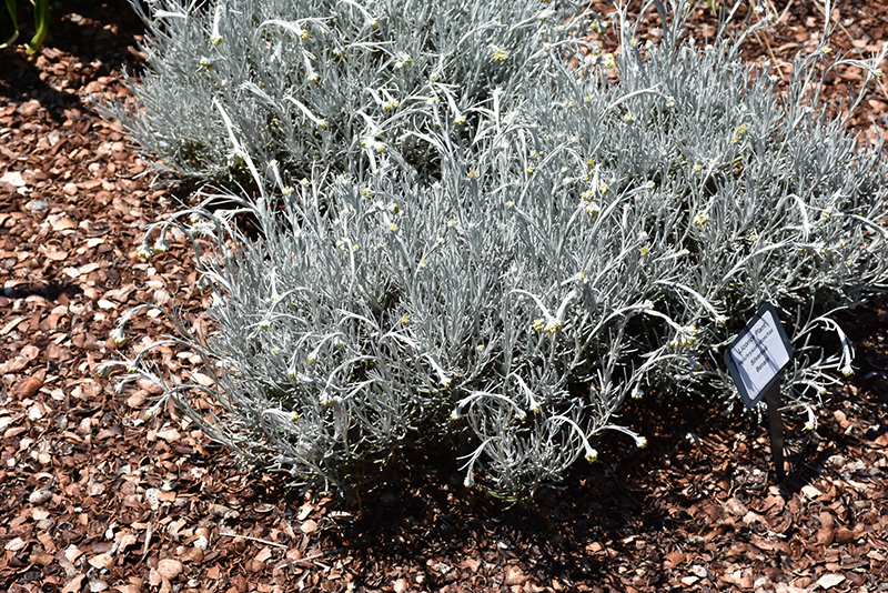 Silverball Curry Plant will grow to be about 18 inches tall at maturity, with a spread of 24 inches. When grown in masses or used as a bedding plant, individual plants should be spaced approximately 18 inches apart. Its foliage tends to remain dense right to the ground, not requiring facer plants in front. Although it's not a true annual, this fast-growing plant can be expected to behave as an annual in our climate if left outdoors over the winter, usually needing replacement the following year. As such, gardeners should take into consideration that it will perform differently than it would in its native habitat.