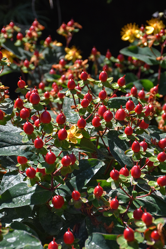 Magical® Universe St. John's Wort has masses of beautiful yellow buttercup flowers at the ends of the branches from mid to late spring, which are most effective when planted in groupings. The flowers are excellent for cutting. It features an abundance of magnificent dark red berries from late summer to mid fall. It has forest green deciduous foliage. The narrow leaves do not develop any appreciable fall colour.