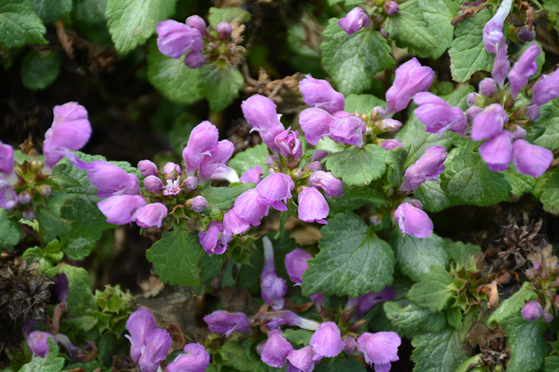 Lami™ Dark Purple Dead Nettle will grow to be only 5 inches tall at maturity, with a spread of 12 inches. Its foliage tends to remain low and dense right to the ground. It grows at a fast rate, and under ideal conditions can be expected to live for approximately 10 years. As an herbaceous perennial, this plant will usually die back to the crown each winter, and will regrow from the base each spring. Be careful not to disturb the crown in late winter when it may not be readily seen!