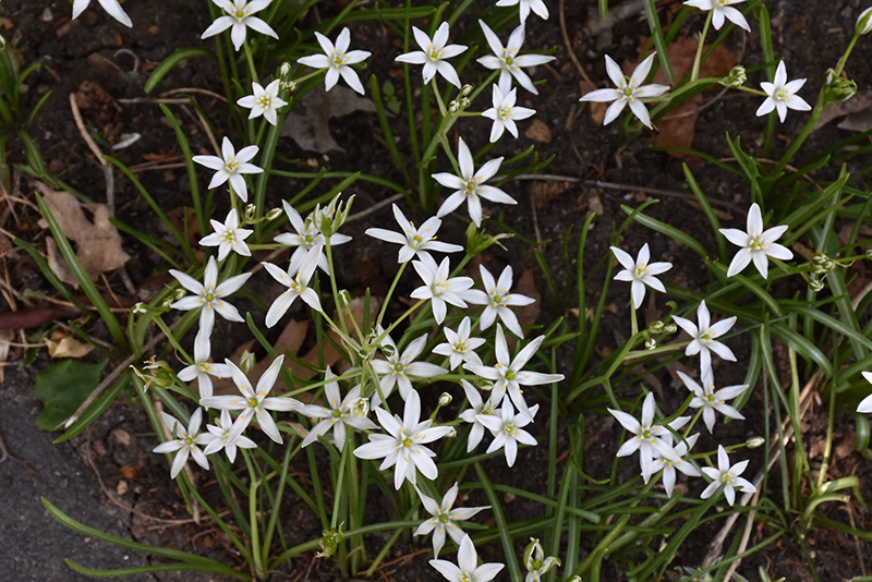 Garden Star Of Bethlehem will grow to be about 12 inches tall at maturity, with a spread of 24 inches. When grown in masses or used as a bedding plant, individual plants should be spaced approximately 18 inches apart. Its foliage tends to remain dense right to the ground, not requiring facer plants in front. It grows at a fast rate, and under ideal conditions can be expected to live for approximately 10 years. As an herbaceous perennial, this plant will usually die back to the crown each winter, and will regrow from the base each spring. Be careful not to disturb the crown in late winter when it may not be readily seen!