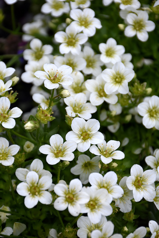 Alpino™ Early Lime Saxifrage has masses of beautiful white star-shaped flowers with chartreuse eyes and lime green centers at the ends of the stems from early spring to early summer, which are most effective when planted in groupings. Its needle-like leaves remain emerald green in colour throughout the season.