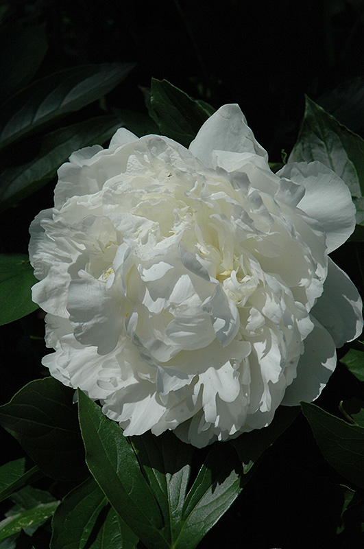 White Frost Peony will grow to be about 30 inches tall at maturity, with a spread of 3 feet. When grown in masses or used as a bedding plant, individual plants should be spaced approximately 30 inches apart. The flower stalks can be weak and so it may require staking in exposed sites or excessively rich soils. It grows at a slow rate, and under ideal conditions can be expected to live for approximately 20 years. As an herbaceous perennial, this plant will usually die back to the crown each winter, and will regrow from the base each spring. Be careful not to disturb the crown in late winter when it may not be readily seen!