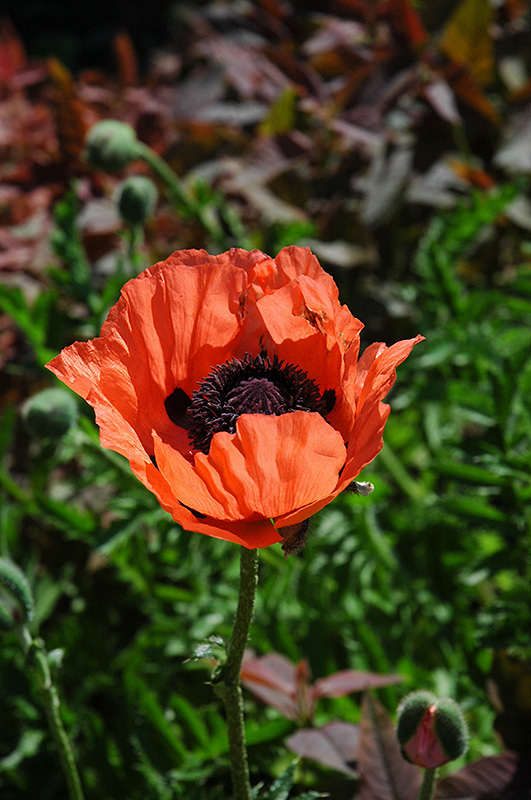 Carneum Poppy will grow to be about 24 inches tall at maturity, with a spread of 24 inches. When grown in masses or used as a bedding plant, individual plants should be spaced approximately 18 inches apart. It grows at a fast rate, and under ideal conditions can be expected to live for approximately 5 years. As an herbaceous perennial, this plant will usually die back to the crown each winter, and will regrow from the base each spring. Be careful not to disturb the crown in late winter when it may not be readily seen! As this plant tends to go dormant in summer, it is best interplanted with late-season bloomers to hide the dying foliage.