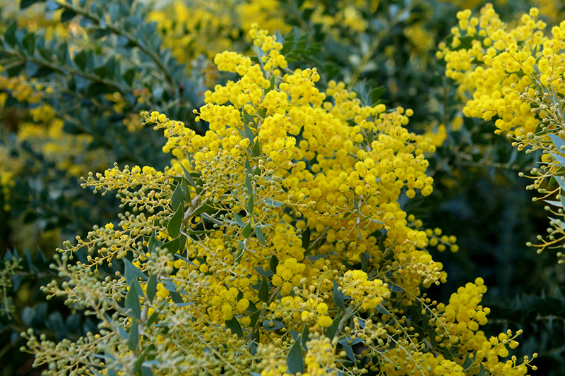 Knifeleaf Wattle features showy clusters of fragrant yellow ball-shaped flowers along the branches from late winter to early spring. It has attractive grayish green evergreen foliage. The pointy leaves are highly ornamental and remain grayish green throughout the winter.