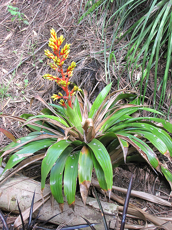 Tail Bromeliad is an herbaceous evergreen tropical plant with a shapely form and gracefully arching foliage. Its relatively coarse texture can be used to stand it apart from other garden plants with finer foliage.