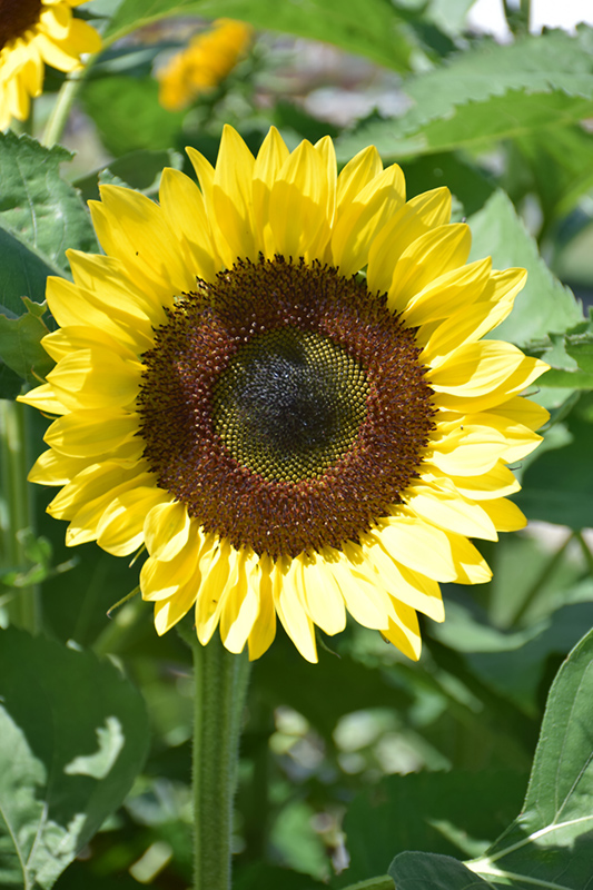 A lovely, pollenless variety featuring 6" wide, golden yellow blooms with golden brown centers; a low maintenance choice that is both edible and attractive; petals add nuttiness to salads, while seed are wonderful when roasted