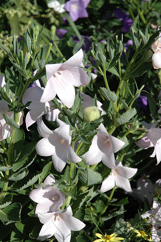 Hakone White Balloon Flower will grow to be about 18 inches tall at maturity extending to 24 inches tall with the flowers, with a spread of 18 inches. When grown in masses or used as a bedding plant, individual plants should be spaced approximately 15 inches apart. It grows at a medium rate, and under ideal conditions can be expected to live for approximately 10 years. As an herbaceous perennial, this plant will usually die back to the crown each winter, and will regrow from the base each spring. Be careful not to disturb the crown in late winter when it may not be readily seen!