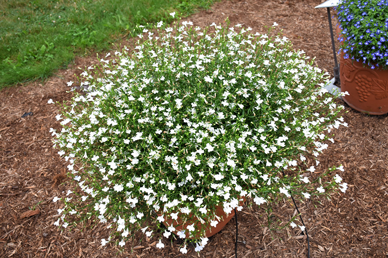 Lobelix White Lobelia is a fine choice for the garden, but it is also a good selection for planting in outdoor containers and hanging baskets. It is often used as a 'filler' in the 'spiller-thriller-filler' container combination, providing a mass of flowers against which the thriller plants stand out. Note that when growing plants in outdoor containers and baskets, they may require more frequent waterings than they would in the yard or garden.