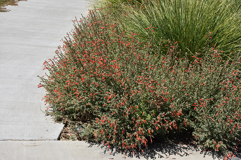 California Fuchsia will grow to be about 24 inches tall at maturity, with a spread of 4 feet. Its foliage tends to remain dense right to the ground, not requiring facer plants in front. It grows at a medium rate, and under ideal conditions can be expected to live for approximately 10 years. As an herbaceous perennial, this plant will usually die back to the crown each winter, and will regrow from the base each spring. Be careful not to disturb the crown in late winter when it may not be readily seen!