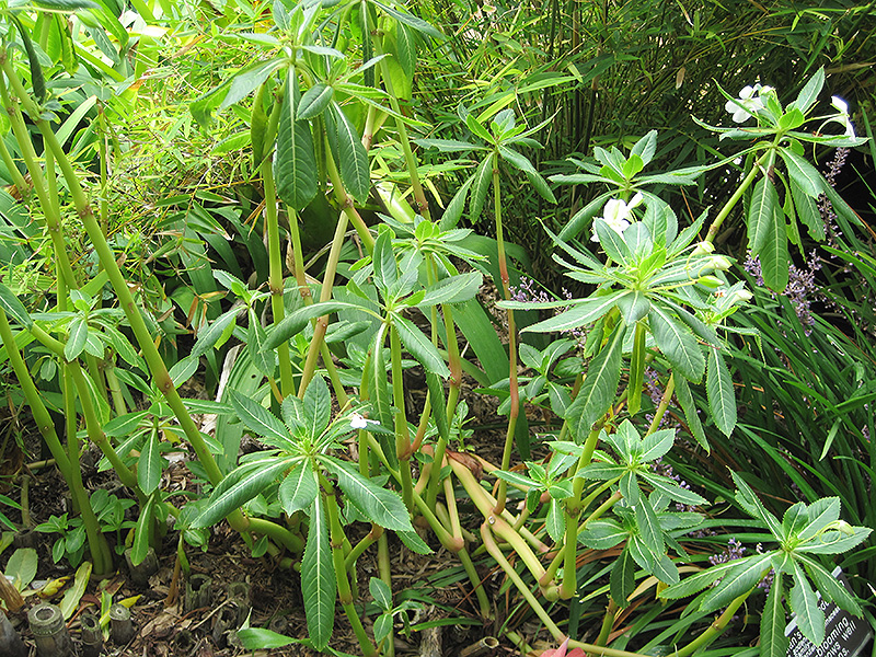 Poor Man's Rhododendron will grow to be about 8 feet tall at maturity, with a spread of 10 feet. Its foliage tends to remain dense right to the ground, not requiring facer plants in front. Although it's not a true annual, this plant can be expected to behave as an annual in our climate if left outdoors over the winter, usually needing replacement the following year. As such, gardeners should take into consideration that it will perform differently than it would in its native habitat.