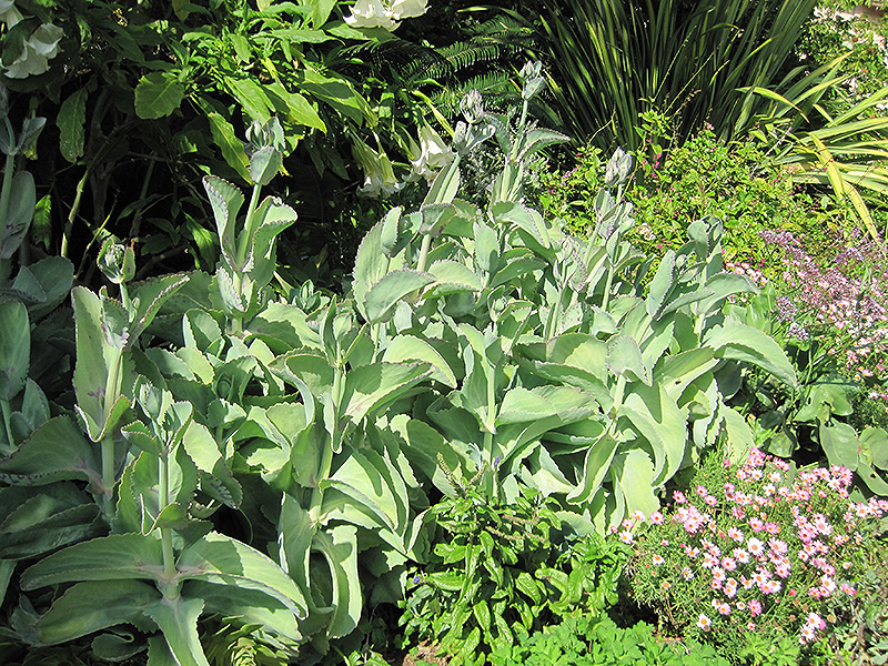 This succulent features thick upright stems with blue-green, scalloped oval leaves, tinged with rose-violet; clusters of fragrant yellow flowers on branched stalks in spring; great for containers and rock gardens, or as a border plant