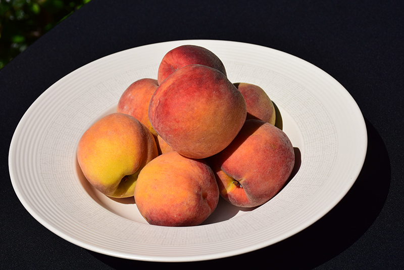 An early ripening fruit tree that produces firm and delicious peaches during mid summer; ornamental, with showy pink flowers in spring; large yellow fruit with deep red blushes and minimal fuzz are perfect for fresh eating, baking and canning