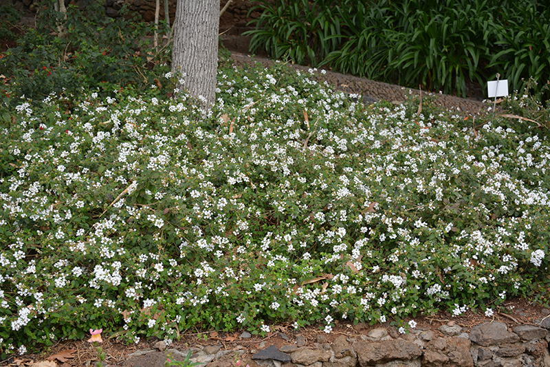 This elegant trailing variety produces a vivid display of white flower clusters, contrasting the dark green foliage beneath; heat and drought tolerant; great for beds, borders, and containers