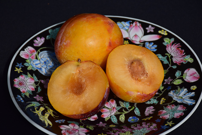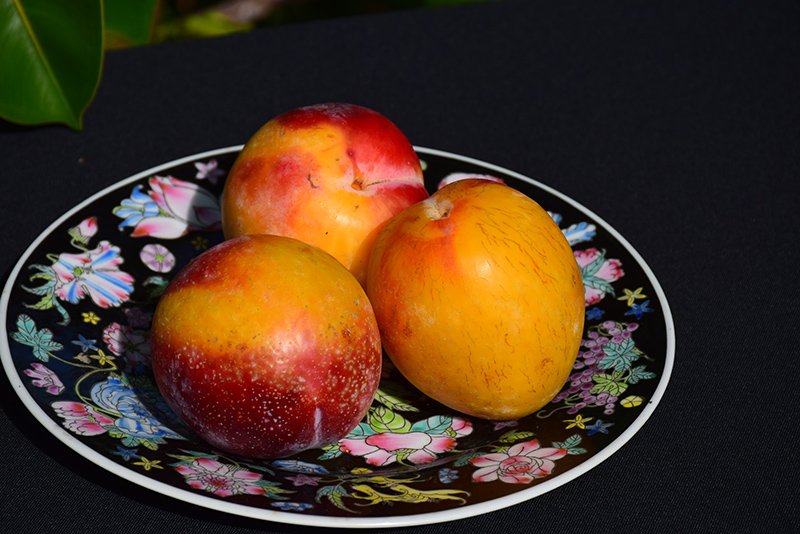 Howard Miracle Japanese Plum is a small tree that is typically grown for its edible qualities. It produces large yellow round fruit (technically 'drupes') with a crimson blush and yellow flesh which are typically harvested when mature. Note that the fruits have hard inedible pits inside which must be removed before eating or processing. The fruits have a sweet taste and a juicy texture.