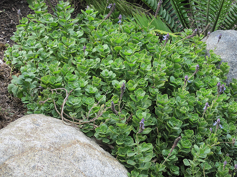 Attractive spikes of purple and blue flowers rise above a ground-hugging, spreading mat of rounded, scalloped gray-green foliage; blooms for most of the year in warm climates; a lovely addition to the garden, containers, or hanging baskets; heat tolerant