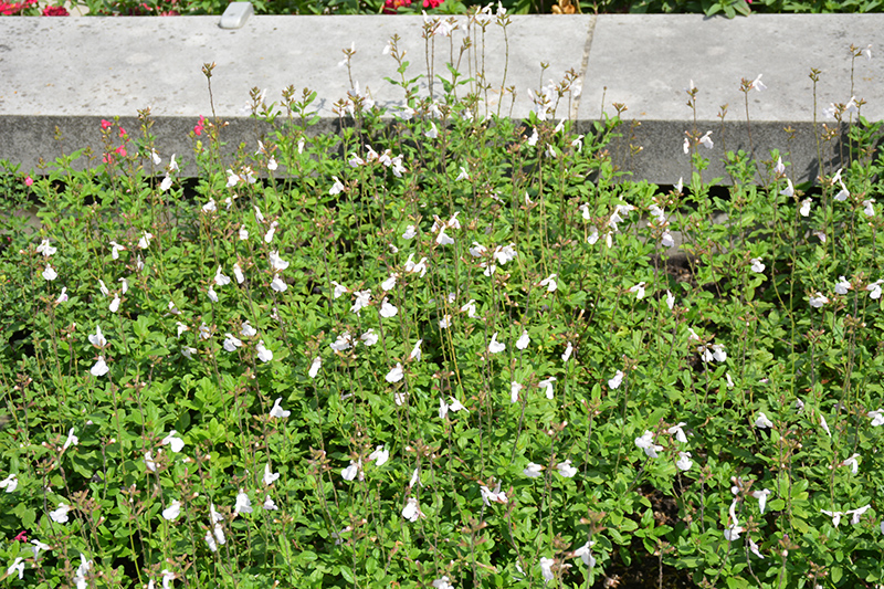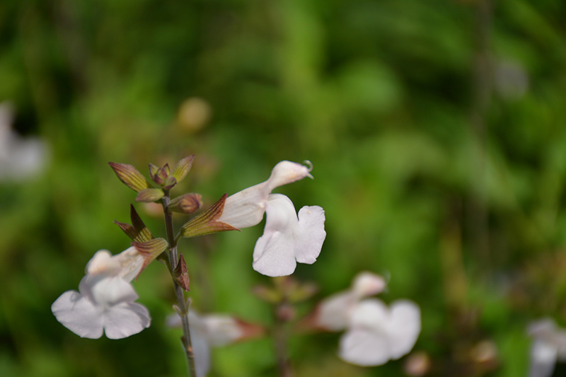 Elmira Sage has masses of beautiful fragrant white flowers with shell pink overtones at the ends of the stems from mid spring to mid fall, which are most effective when planted in groupings. The flowers are excellent for cutting. Its small pointy leaves remain green in colour throughout the year.