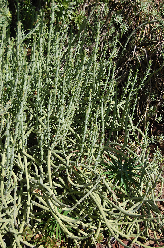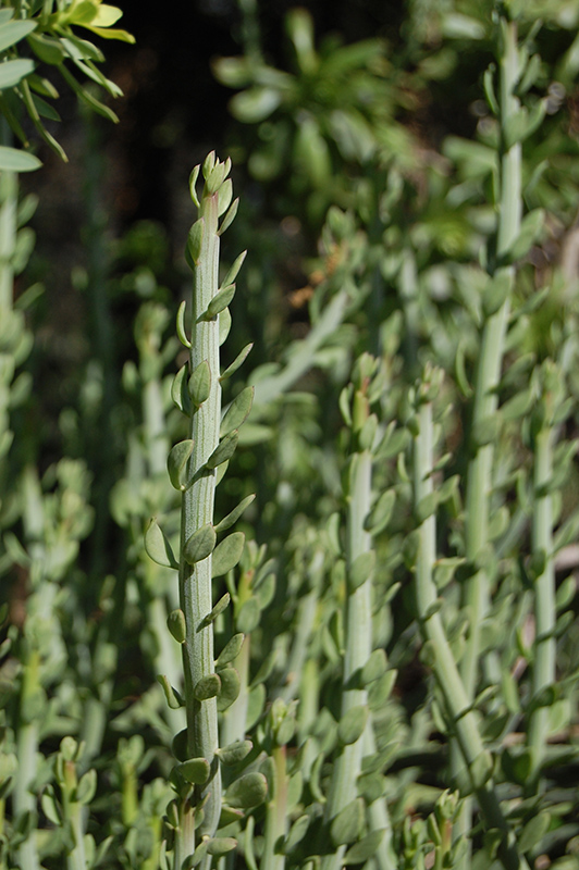 An interesting and beautiful succulent variety, producing narrow, cylindrical, and segmented stems that reach upward, with tiny leaves; leafless during summer dormancy; a perfect accent in rock gardens, containers, or massed