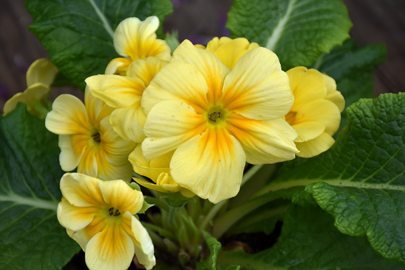The primrose of the English countryside is hardy and prefers sheltered shaded areas but will tolerate dry soil for a while; deep green leaves are the backdrop for the natural shade of yellow flowers; many other colors are available as well