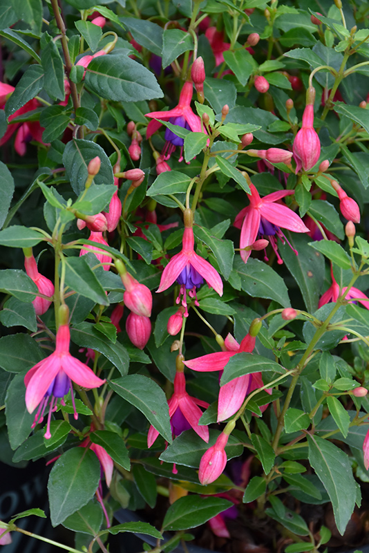 An exceptional trailing selection, featuring lovely, royal purple blooms, with vivid pink sepals; very attractive to hummingbirds; perfect for patio containers, borders, or hanging baskets in sun or shade