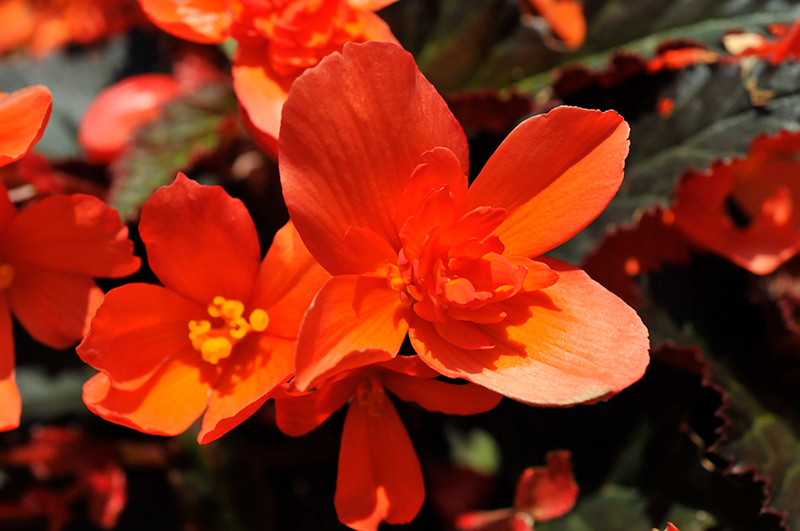 I'Conia® Upright Fire Begonia features bold orange round flowers at the ends of the stems from late spring to early fall. Its heart-shaped leaves remain dark green in colour with hints of burgundy throughout the year.
