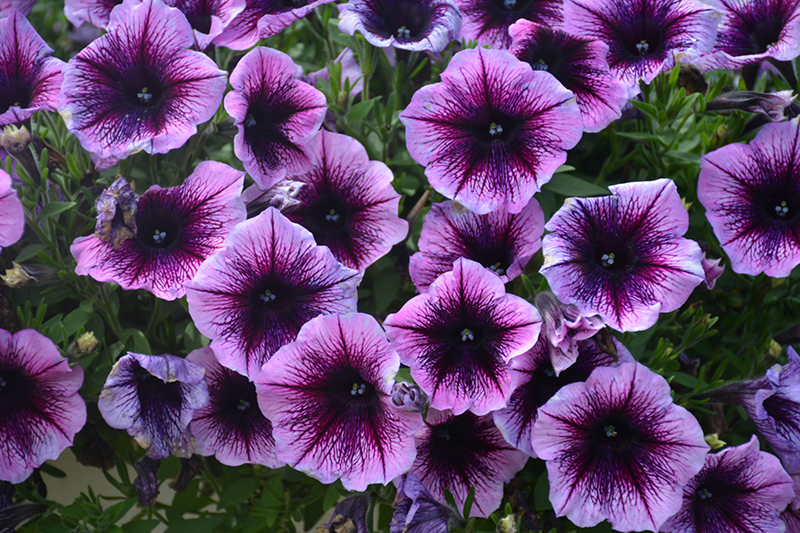 An outstanding mounded selection, uniform and fast blooming; features blue-violet trumpeted flowers veined in dark purple, creating a marvelous display in hanging baskets, patio containers and garden landscapes; deadhead to encourage new growth
