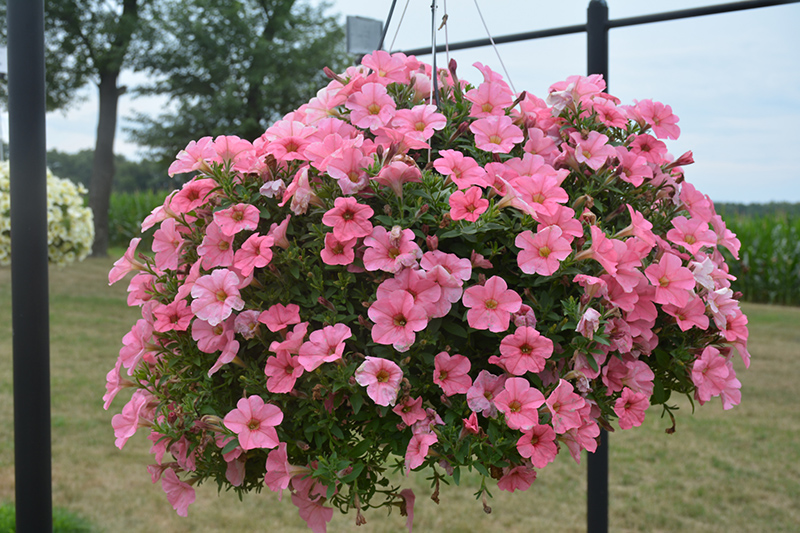 An outstanding mounded selection, uniform and fast blooming; features salmon pink trumpeted flowers, creating a marvelous display in hanging baskets, patio containers and garden landscapes; easy to maintain, deadhead to encourage new growth