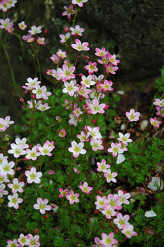 Toyo Yatsubusa Saxifrage will grow to be only 6 inches tall at maturity, with a spread of 8 inches. When grown in masses or used as a bedding plant, individual plants should be spaced approximately 6 inches apart. It grows at a medium rate, and under ideal conditions can be expected to live for approximately 5 years. As an herbaceous perennial, this plant will usually die back to the crown each winter, and will regrow from the base each spring. Be careful not to disturb the crown in late winter when it may not be readily seen!