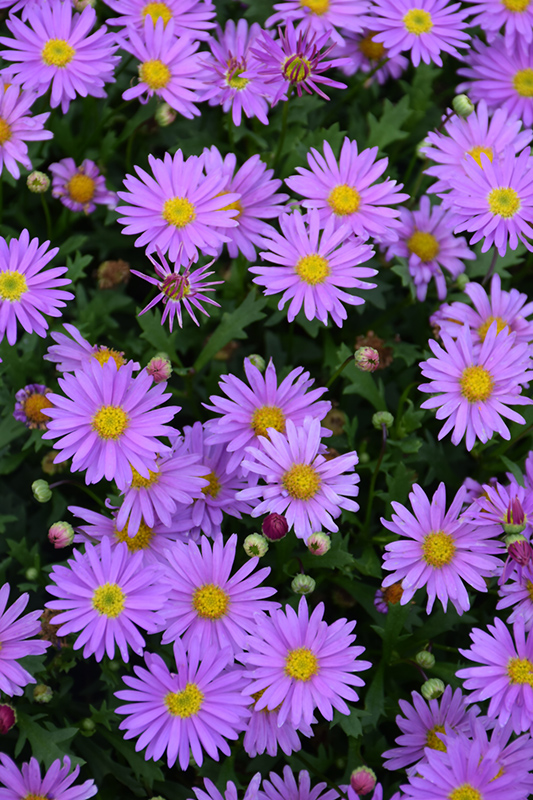 Fresco™ Purple Brachyscome is covered in stunning lavender daisy flowers with gold eyes at the ends of the stems from late spring to mid fall, which emerge from distinctive dark red flower buds. Its tiny serrated pointy leaves remain green in colour throughout the season.