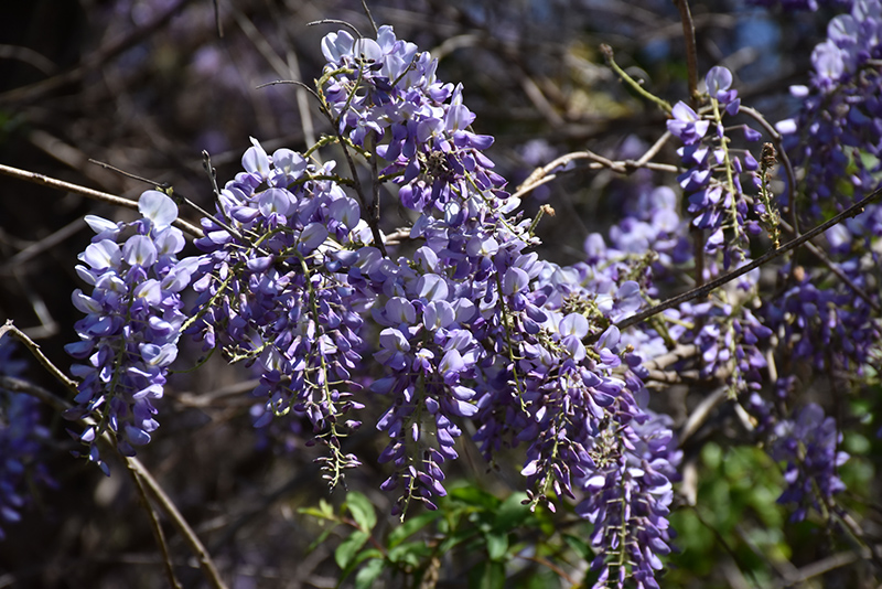 Chinese Wisteria is covered in stunning chains of fragrant lavender pea-like flowers hanging below the branches from mid to late spring, which emerge from distinctive deep purple flower buds. It has green deciduous foliage which emerges grayish green in spring. The narrow pinnately compound leaves turn yellow in fall.