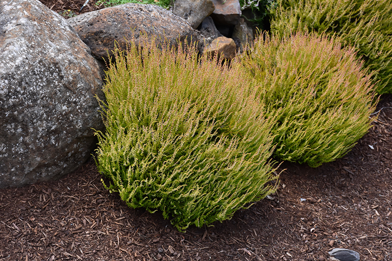 Glenfiddich Heather features tiny spikes of purple bell-shaped flowers at the ends of the branches from late summer to early fall. It has attractive coppery-bronze-variegated lime green foliage with hints of chartreuse. The needles are highly ornamental and turn outstanding shades of coppery-bronze and orange in the fall, which persists throughout the winter.