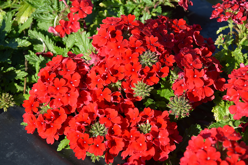 Magelana™ Red Verbena features showy clusters of red star-shaped flowers at the ends of the stems from mid spring to early fall. Its small pointy leaves remain green in colour throughout the season.