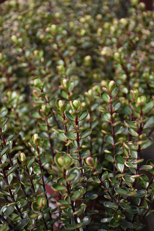 Champion Hebe has masses of beautiful corymbs of violet flowers rising above the foliage from late spring to late summer, which are most effective when planted in groupings. It has attractive dark green foliage edged in red. The small glossy round leaves are highly ornamental and turn an outstanding purple in the fall, which persists throughout the winter. The burgundy stems can be quite attractive.