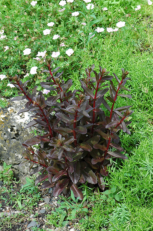 Purple Showy Stonecrop will grow to be about 12 inches tall at maturity, with a spread of 12 inches. When grown in masses or used as a bedding plant, individual plants should be spaced approximately 10 inches apart. It grows at a fast rate, and under ideal conditions can be expected to live for approximately 15 years. As an herbaceous perennial, this plant will usually die back to the crown each winter, and will regrow from the base each spring. Be careful not to disturb the crown in late winter when it may not be readily seen!