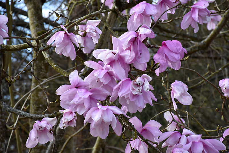 A stunning accent tree for general landscape use, featuring very large flowers that are white on the inside, and mauve-pink on the outside; neat foliage and a picturesque habit of growth; site in sheltered area with room to spread; not for dry areas