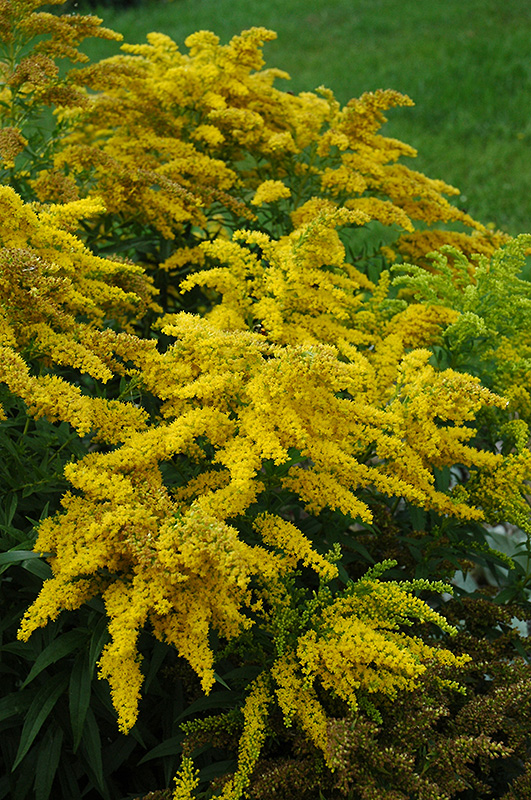 Crown Of Rays Goldenrod has masses of beautiful ray-like plumes of gold flowers at the ends of the stems from late summer to late fall, which are most effective when planted in groupings. Its narrow leaves remain green in colour throughout the season.