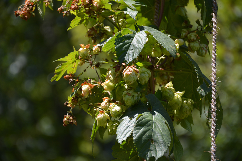 An attractive, fast growing perennial vine, with cone-shaped clusters of light green fruits which are used in making beer; earthy, citrus and spicy notes; used for bittering; tough and adaptable, needs structural support, cut back to the ground in fall