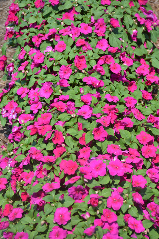 Xtreme™ Violet Impatiens will grow to be about 8 inches tall at maturity, with a spread of 10 inches. When grown in masses or used as a bedding plant, individual plants should be spaced approximately 10 inches apart. Its foliage tends to remain low and dense right to the ground. This fast-growing annual will normally live for one full growing season, needing replacement the following year.