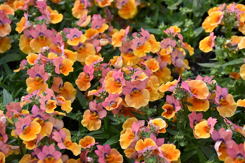 Angelart Peach Nemesia is a dense herbaceous annual with a mounded form. Its relatively fine texture sets it apart from other garden plants with less refined foliage.
