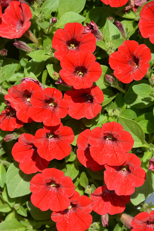 Littletunia® Bright Red Petunia will grow to be about 12 inches tall at maturity, with a spread of 12 inches. When grown in masses or used as a bedding plant, individual plants should be spaced approximately 10 inches apart. Its foliage tends to remain dense right to the ground, not requiring facer plants in front. This fast-growing annual will normally live for one full growing season, needing replacement the following year.