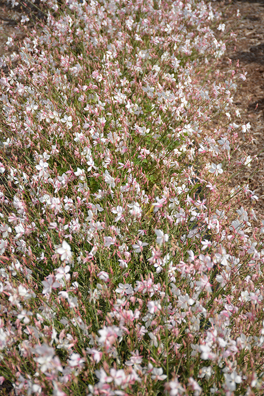 Walberton's® Snow Fountain Gaura will grow to be about 24 inches tall at maturity extending to 3 feet tall with the flowers, with a spread of 18 inches. When grown in masses or used as a bedding plant, individual plants should be spaced approximately 16 inches apart. Its foliage tends to remain dense right to the ground, not requiring facer plants in front. Although it's not a true annual, this fast-growing plant can be expected to behave as an annual in our climate if left outdoors over the winter, usually needing replacement the following year. As such, gardeners should take into consideration that it will perform differently than it would in its native habitat.