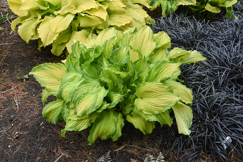 First Dance Hosta features dainty spikes of lavender tubular flowers rising above the foliage from mid to late summer. Its attractive textured heart-shaped leaves emerge yellow in spring, turning chartreuse in colour with distinctive dark green edges and tinges of light green throughout the season.